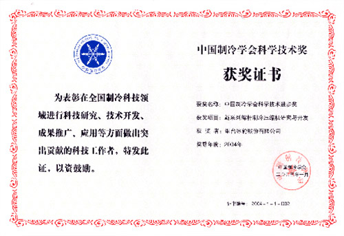 2005年1月,冰轮“新系列螺杆制冷压缩机研究与开发”荣获中国制冷学会科技进步一等奖。