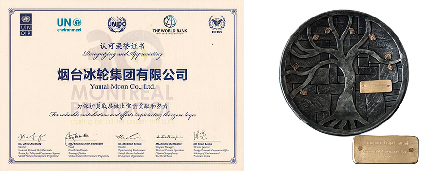 冰轮环境作为我国唯一企业荣获联合国“保护臭氧层示范项目奖”。