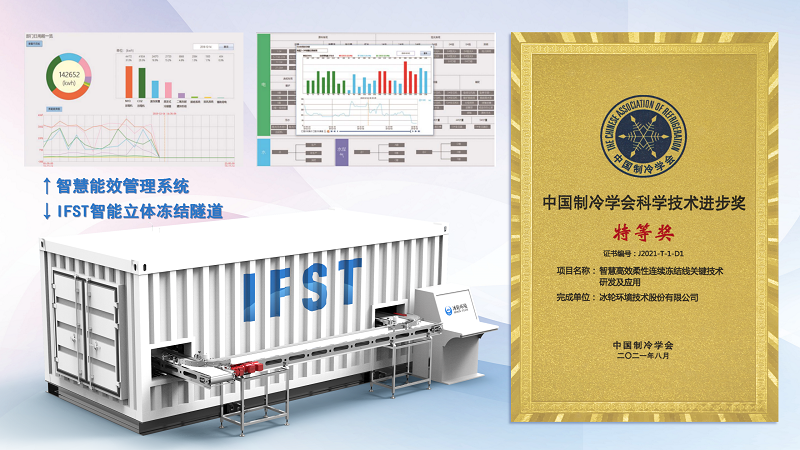 冰轮环境智慧高效柔性连续冻结线关键技术研发及应用获中国制冷学会科学技术进步奖特等奖。